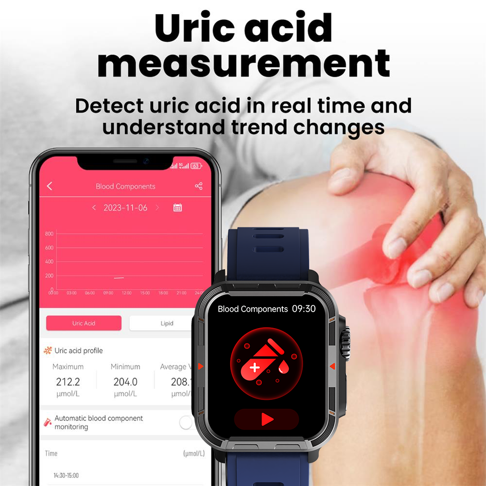 BEARSCOME VEE PRO Rugged Sports Smartwatch for Body composition /ECG/ Blood sugar/Blood pressure/heart rate monitoring